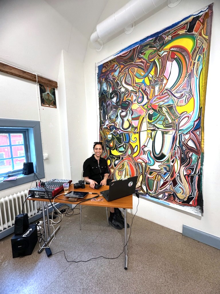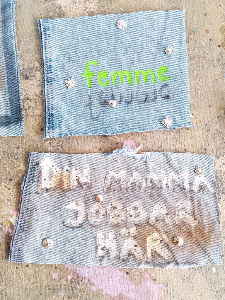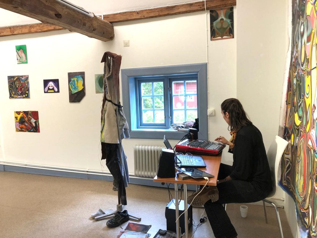 Finn Öhlund’s exhibition, “Främlingsvänlighet”, takes place in Farsta Galleri at the peak of midsummer. The title is a playful version of främlingsfientlighet, Swedish for xenofobia. As a guest appearance, I was DJing my own and others’ music, and selling handmade jean patches featuring a robot girl, abstracts, nuclear plants, and texts.